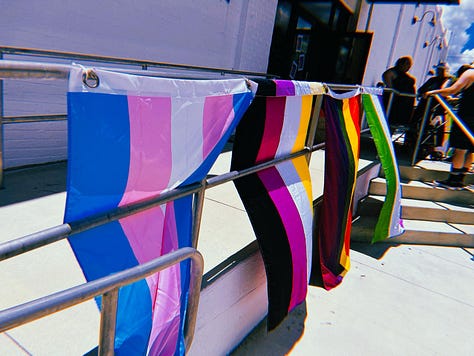 Despite finding myself in hetero-normative partnership once more (I guess I’m just a sucker for a gentle soul, & @seanhults has the kindest of all 🤍)… I love that my partner is also my biggest ally. I love that we attend a church—an institution I was incredibly hesitant to return to serving—that is accepting & affirming. I love that we bumped into children we work with at that church at this local bake sale for trans rights. I love that we bumped into almost everyone we know here in town. I love how seen I feel—how appreciated for just being myself—& I love that I’m finally proud... Proud that I’m alive but not just proud that I have lived. I’m proud that I have loved—on both sides of the binary—& will continue to love deeply, fiercely, & gladly.